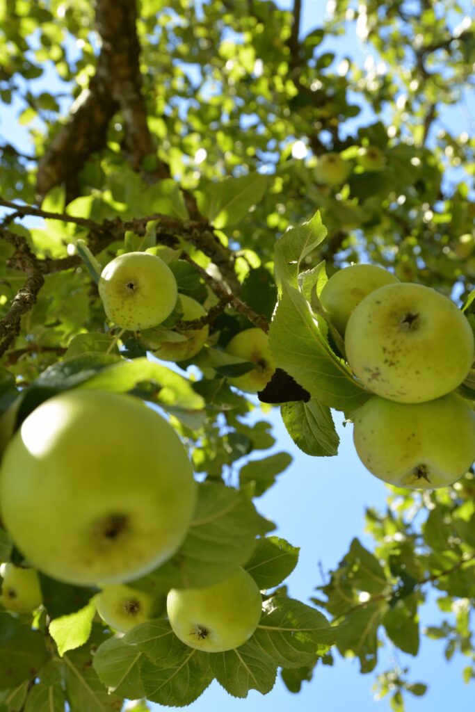 Unsere Obstgärten erstrecken sich knapp über einen Hektar Land und wurden über mehrere Generationen hinweg angelegt und gepflanzt. Überalterte und kranke Bäume werden an gleicher Stelle durch „alte“ Apfelsorten ersetzt. Entdecken Sie hier unsere Apfelroute.